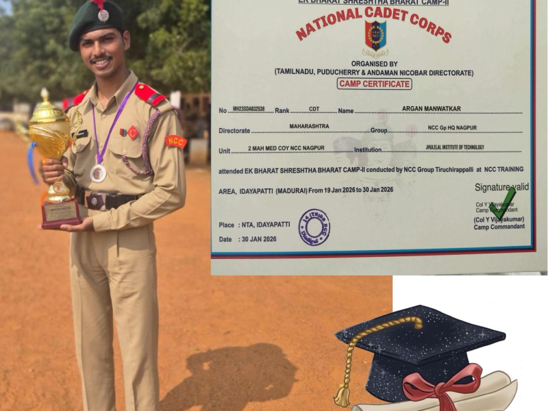 Cdts.Aryan Manwatkar, 3rd year Electrical Engineering Student for securing the 🏆 FIRST PRIZE at NIAP https://www.jitnagpur.edu.in/wp-content/uploads/2026/02/Aryan-1024x1024.png 1024 1024 bhawnani https://secure.gravatar.com/avatar/3b17af021e602303f145caf37431fd22c0cfec8f5638bb21fcf50438bc18322e?s=96&d=mm&r=gThe Department of Electrical EngineeringJhulelal Institute of Technology warmly congratulates…