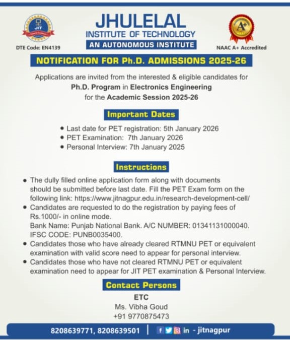 Notification For PH.D Admission 2025-2026 150 150 bhawnani