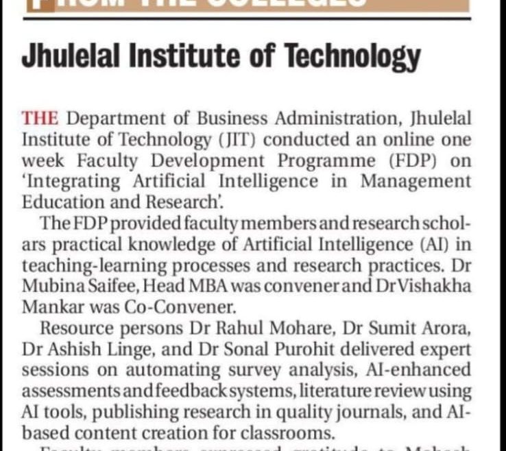 📢 Greetings from Jhulelal Institute of Technology, Nagpur! 🎉