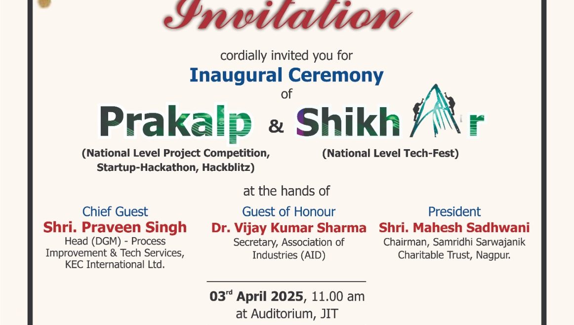invites you for the Inaugural Function of Prakalp – National Level Project Competition, Startup-Hackathon, Hackblitz & Shikhar –National Level Tech Fest at JIT, Nagpur on