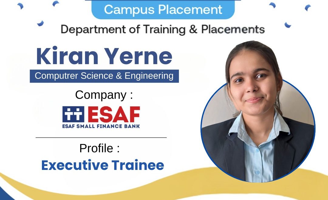 Kiran Yerne Student of Department of Computer Science & Engineering secured placement as an Executive Trainee at ESAF Small Finance Bank!