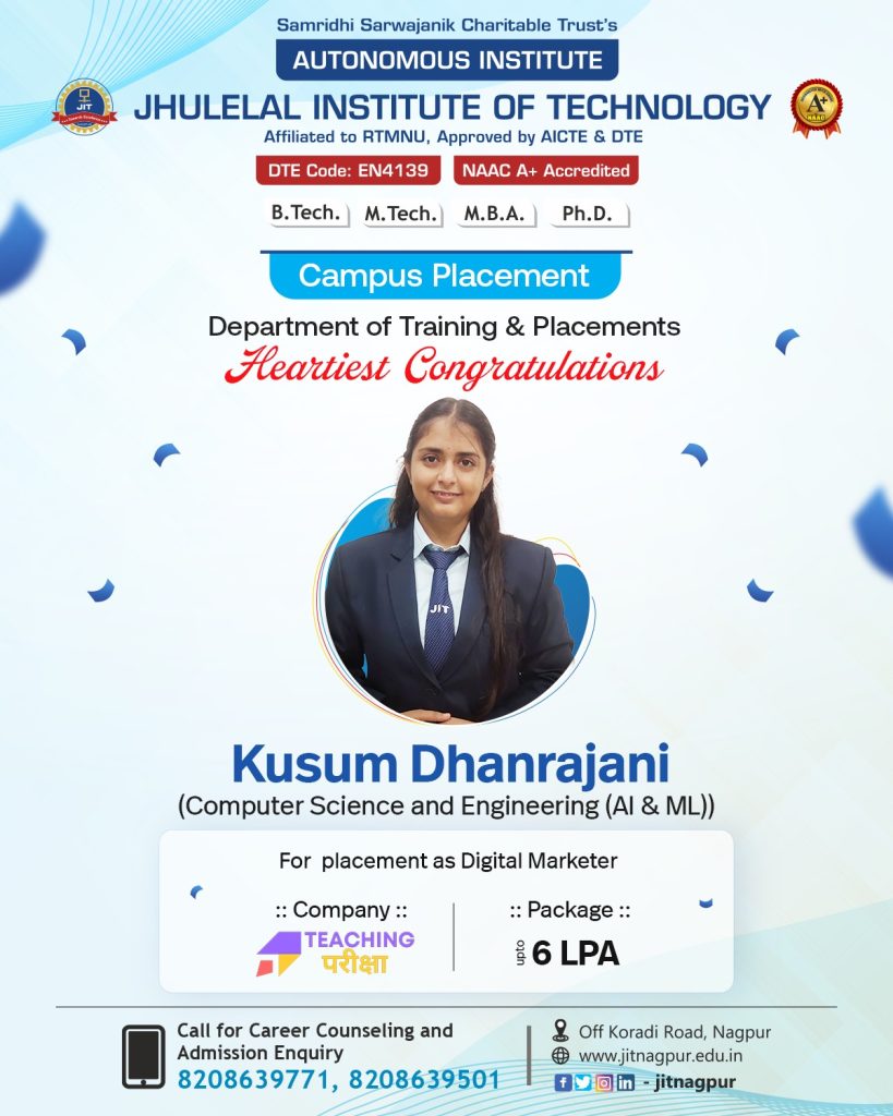 The pledge message highlighted youth as the nation’s driving force, the responsibility of every student to contribute to a drug-free India, and the importance of unified efforts in freeing Nagpur district from addiction. The program was coordinated by the NSS Unit of JIT under the leadership of Mr. Abhay Gomkale (President, JIT NSS Unit) and Mr. Sujal Hadge (Vice President, JIT NSS Unit), with enthusiastic involvement from NSS volunteers.