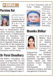 Research Achievements:1. Dr. Reena Thakur Published Patent on PARMITRAAN IOT BASED HEALTH MONITORING SYSTEM. (Application No. 202421032943)