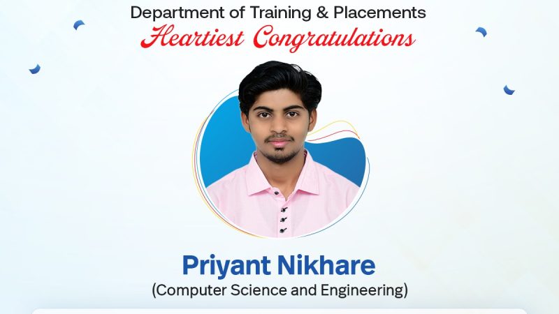 Congratulation to priyant nikhare for Placements