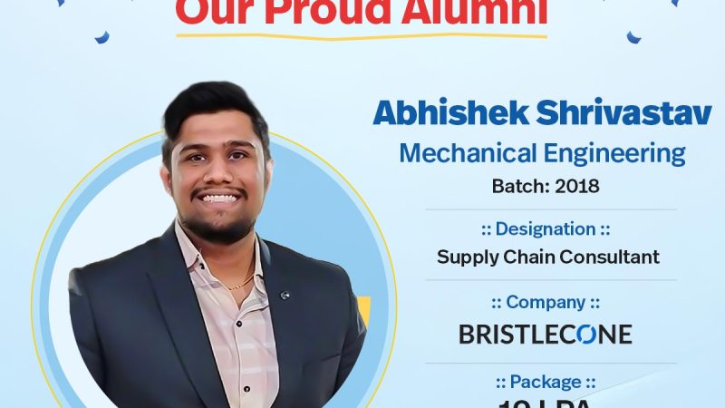 Our Proud Alumni…🔅✨ Congratulations toAbhishek Shrivastav,Mechanical Engineering,Batch of 2018,for achieving success as aSupply Chain Consultant at Bristlecone with an impressive package of19 LPA!…✨🎯 Your journey is an inspiration to us all, and we at Jhulelal Institute of Technology are proud of your accomplishments.💫💯 Wishing you continued success and growth in your career!🔅💥